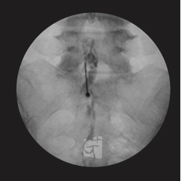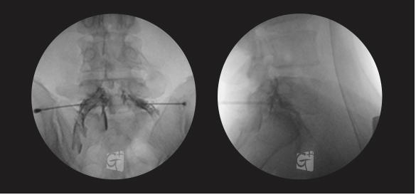 요추 5번에서 시행된 선택적 신경치료 약물이 신경근과 추가공 안쪽으로 잘 퍼지는 모습